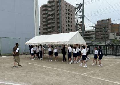 放課後にクラブ、同好会の生徒たちと一緒にテントを設営しました。30日の本番に向けて着々と準備しています。