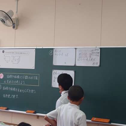 6年3組と2年1組の算数科の授業を見ていただきます。写真は6年生です。