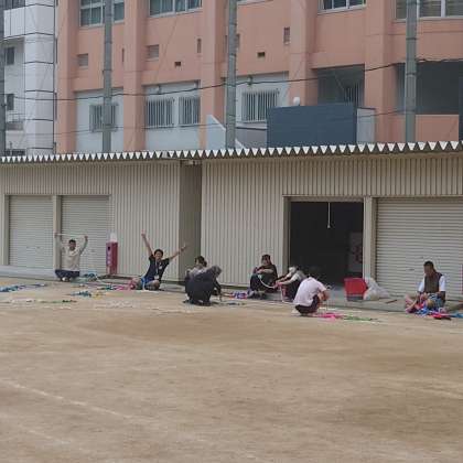 天気が心配ですが、安全にできるように準備しています。写真は、9年生の学年種目の準備です。子どもたちの笑顔がみたいですね。