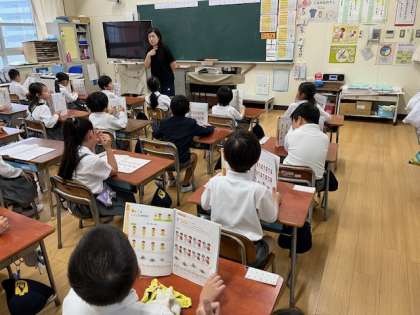 6月3日(火)1時間目、「ぶんぶんぶん」と明るい声が聞こえてきます。1年1組の教室からでした。