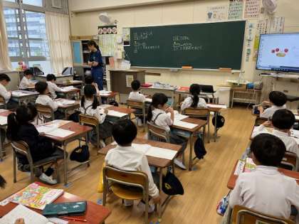 6月3日(火)1時間目、1年2組は算数で、2+3の計算の仕方を考えていました。