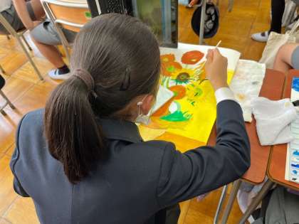 6月5日(木)5時間目、6年3組は図工で名作の模写をしていました。上手に色を作っていました。