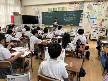 6月12日(木)1時間目、4年2組は社会科で、ごみの種類と、どのようにごみを、集めているのかを学習していました。