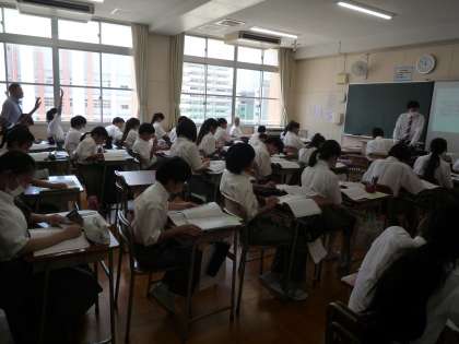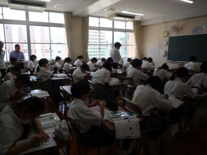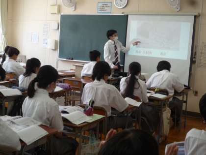 プロジェクターを使用しての授業で、生徒たちも積極的に手を挙げていました。