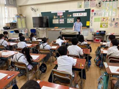 7月1日(火)5時間目、1年1組は栄養指導でした。じゃがいもは何色の食べ物かを調べていました。3色の栄養素についての学習をしていました。