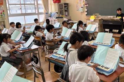 7月2日(水)5時間目、2年2組は音楽で鍵盤ハーモニカの練習をしていました。