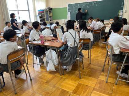 7月9日(水)1時間目、6年2組は理科で、黒板に書かれた内容から食物連鎖について学習しているようでした。