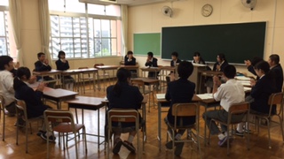 5月10日火曜日放課後 第1回目の生徒議会が行われました。各学年学級代表と各委員会の委員長が集まりました。第1回目ということもあり、はじめに自己紹介、そして今月の目標などの報告を行っていました。