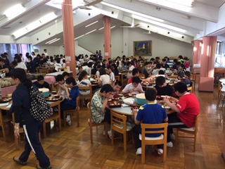 17時 夕食が始まりました。他の団体との関係で、本校はすでにお風呂も済ませています。