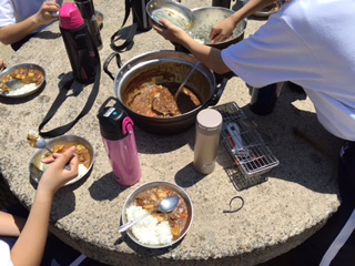 11時 9時から始まったカレー作り、大変苦労をして出来上がりました。片付けが大変です。