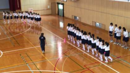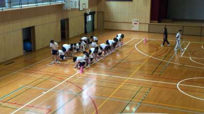 6月6日月曜日 体育の時間を使い、6月17日金曜日に行われます運動会の練習を行っています。この写真の時間は、3年生の学年種目であるムカデ競争の練習です。。工事のため、外での練習ができないのですが、体育館で一生懸命練習を行っていました。
