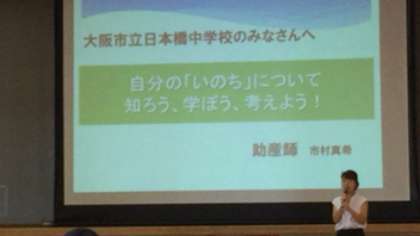 10月7日金曜日 6時間目、大阪府助産師会の市村真希さんを招いて、自分の「いのち」について知ろう、学ぼう、考えようをテーマに、講演会を行いました。