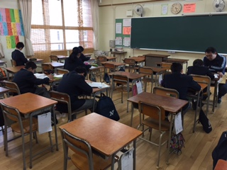 11月25日金曜日 期末テストを30日水曜日に控えて、どの学年でも放課後に残って学習会を行っていました。この成果が点数となってあらわれることを期待しています。