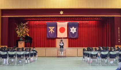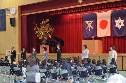 中学校の新入生は、起立や礼など、司会の指示にも正しくすばやく動き、お話を聞く姿勢も立派で素晴らしかったです。