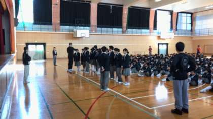 朝の集会で認証式を行いました。各委員の代表の生徒が校長先生から認証状を受け取りましたみんな、それぞれの委員で頑張ってくれることと思います。