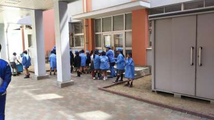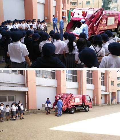 環境事業局の方に来ていただき、4年生がパッカー車体験をさせていただきました。