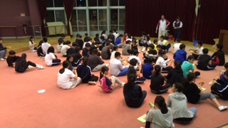 21時 室内オリンピックが終わり、夜食のパンと飲み物をとっています。また明日報告します。