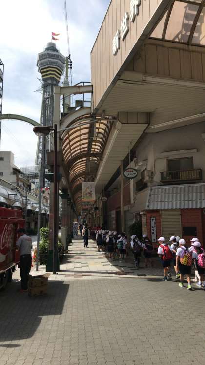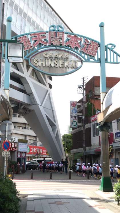 動物園までの道のりで、通天閣本通を通りました。お店の方が店先に出て来て優しく話しかけてくださる場面がありました。