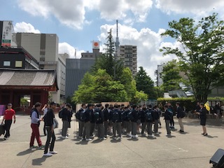 9時50分 浅草寺に到着しました。遠くに見えるのはスカイツリーです。