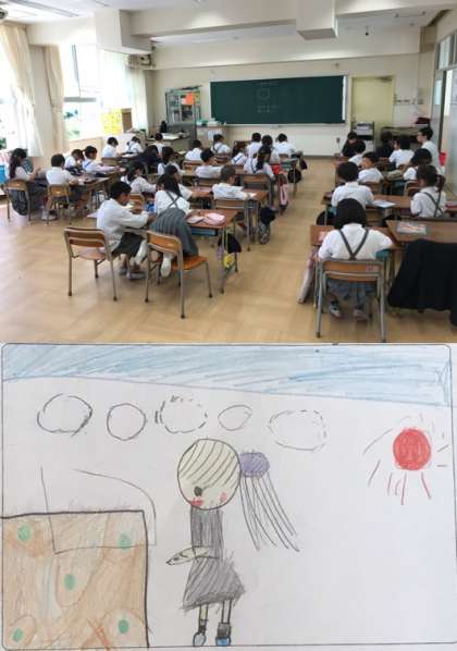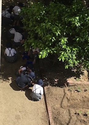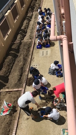 今日は、生活科の授業でえだまめを植木鉢に植えました。