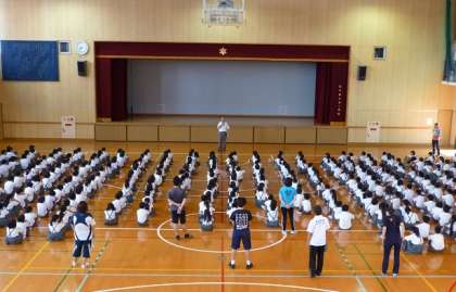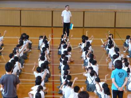 今日の朝会では、校長先生から朝の集団登校をより安全にするために気をつけてほしいことなどのお話がありました。