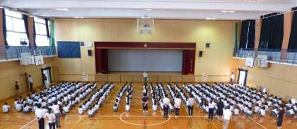 最後に、はじめて全員で新しい校歌を合唱しました。