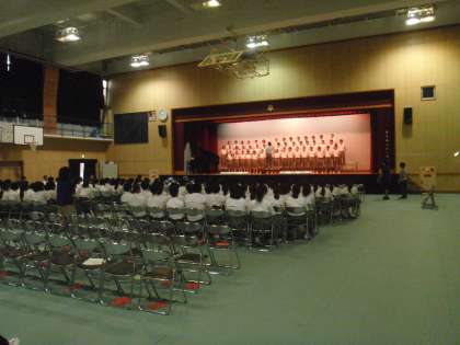 明日の文化祭本番に向けて、中学校では体育館でリハーサルが行われました。