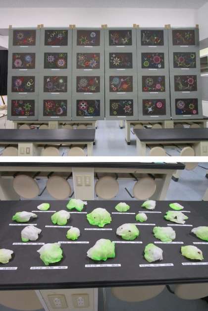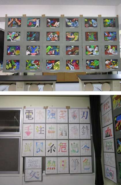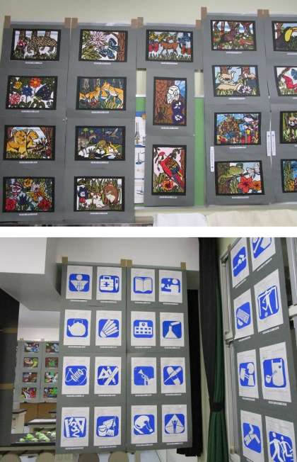 理科室、5階交流スペース、体育館で生徒の作品が展示されました。
