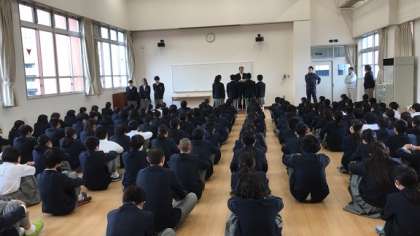 今朝の全校集会(5F交流スペース)で平成29年度 後期生徒会役員・学級役員の認証式が行われました。新役員は、認証状を手にその責任を感じていました。前期生徒会役員から、「全校生徒が協力してくれて、楽しく活動ができた」とお礼の言葉がありました。