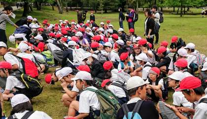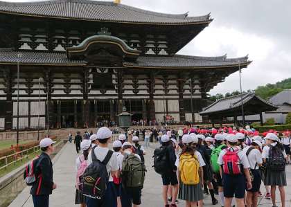 奈良に無事に着きました。奈良公園を散策。お昼前から雨が降りだし、雨宿りをしながらのお弁当になりました。