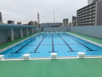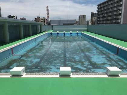 清掃後から入れた水も満水に・・・プール開きに向けて、準備完了!
