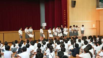 生活習慣について項目ごとにがんばったクラスを紹介してくれました。