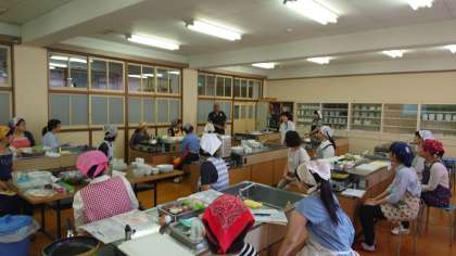 乳業協会様による講義を受講した後、「けが予防につながる強い骨をつくるためのメニュー」として、キノコミルクリゾット・チーズ茶碗蒸しなどの調理実習を行いました。