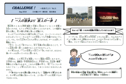 校長だよりVol.3 〜 「一人の百歩より百人の一歩」