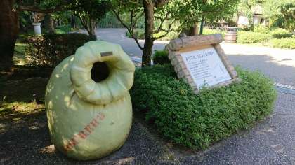 看板やゴミ箱も、周りの世界観にとけ込むように作られていますね。