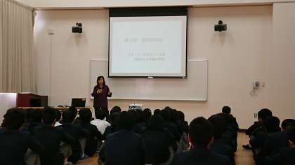 進路指導主事より、今年度の公立・私立入試のポイントなどを説明しました。