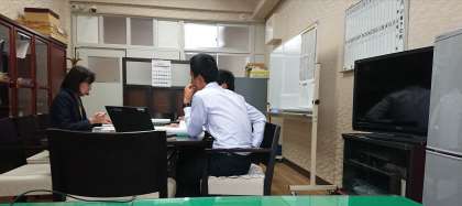 教諭と学力向上推進指導員とで、今日の授業を振り返ります。