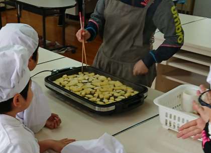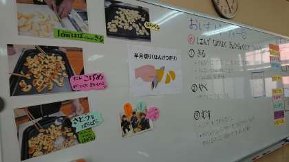 おいもが焼けるまでの間に、学習発表会でがんばったことを発表しました。