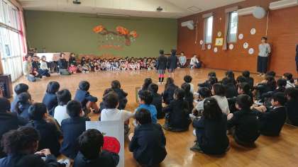 日東幼稚園と浪速小学校2年生との交流会を実施しました。