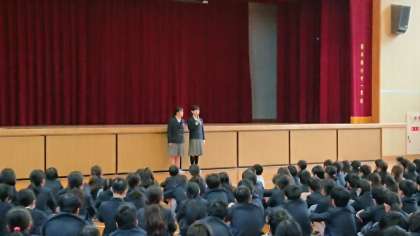 今朝の小学校全校朝会で、代表児童が回収活動についての呼びかけを行ってくれました。
