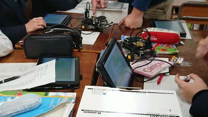 プログラムを考え、実行し、問題点の解決を行う授業に取り組んでいます。
