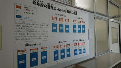 「今年度の健康ふりかえり週間の結果」を小学校保健室前に掲示しています。