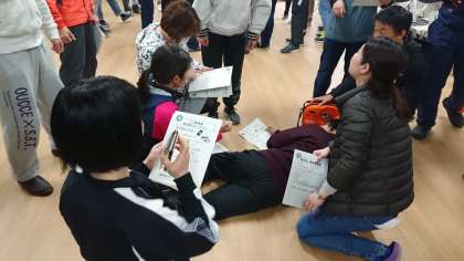 アクションカードを活用した救急時の対応の説明の後、実習形式で対応方法の共通理解を図りました。