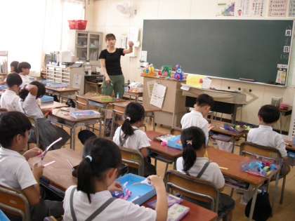 8月26日(火)5時間目、2年2組は図工で素敵な帽子の飾りを作っていました。