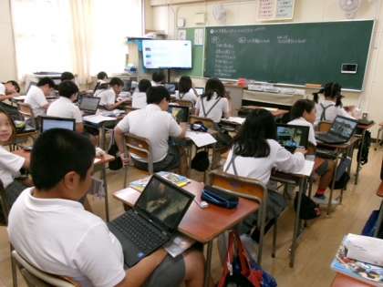 9月3日(水)1時間目、5年3組は社会科で漁業についてパソコン等を使って調べていました。