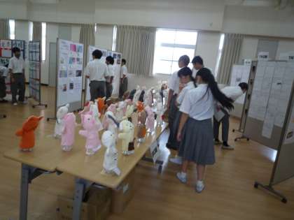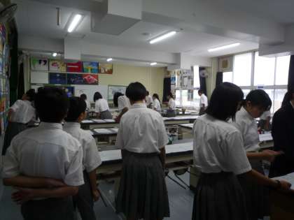 理科、美術科、美術部 の作品が展示され、3・4時限目に各学年が順番に鑑賞しました。