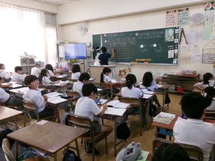 10月8日(水)2時間目、3年は算数で、かけ算の筆算の仕方を考えていました。