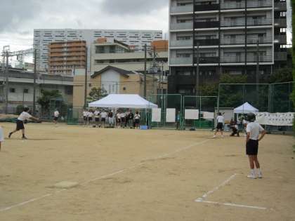 ソフトボールの様子です。ソフトもバレーも、それぞれ浪速区の3中学校の主に3年生、9年生が活動しました。