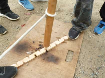 他のクラスも同様に協力して、火起こしです。