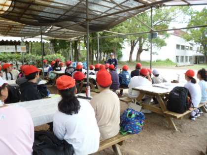 アスレチックで遊んだ後は、焼き板クラフトです。